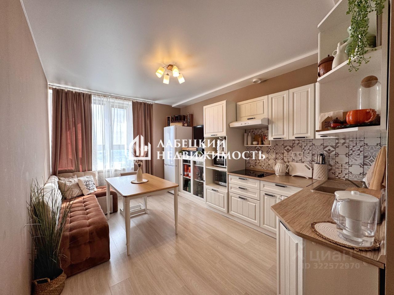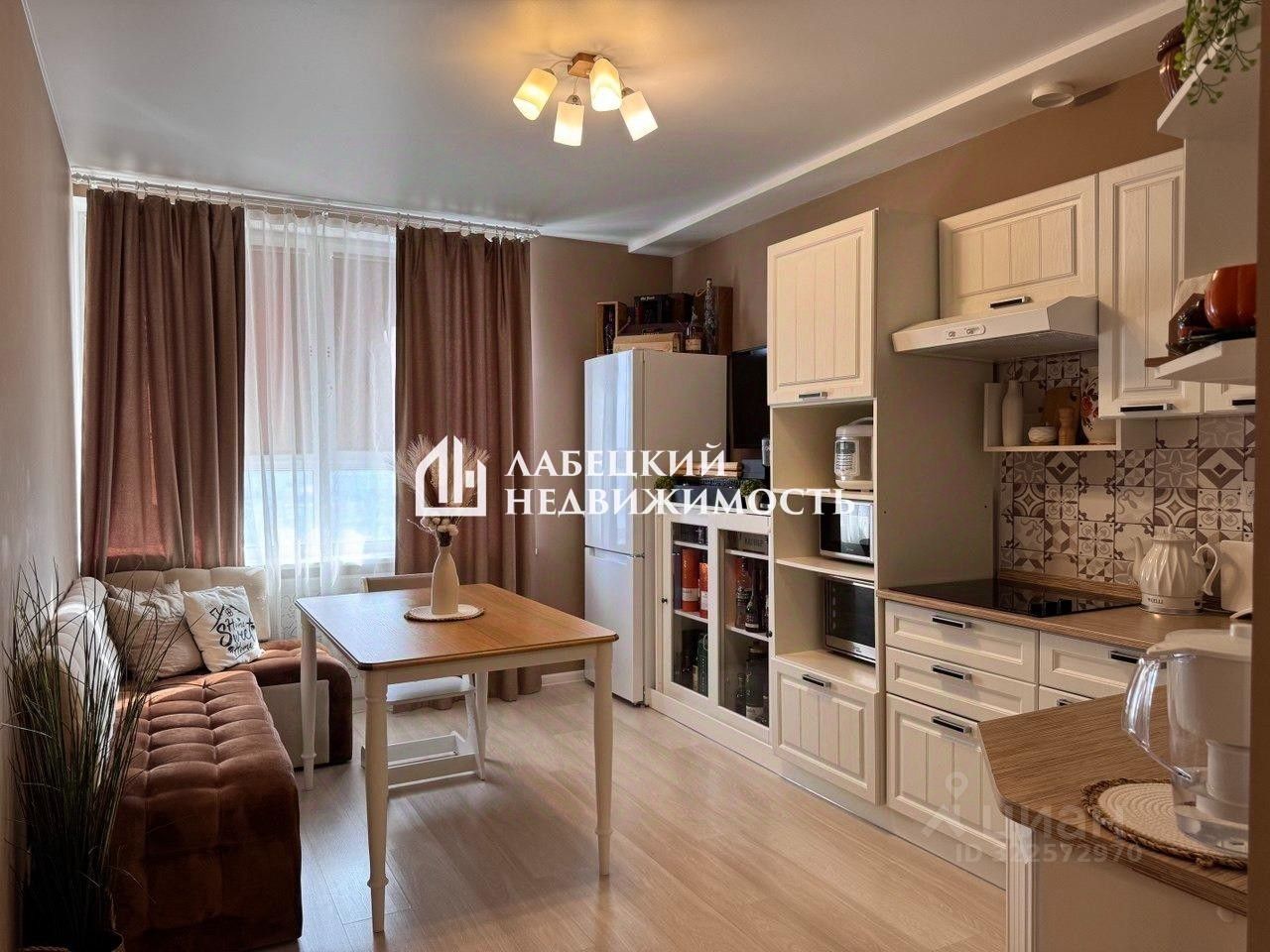 - Квартира общей площадью 38,4 м² продаётся полностью с ремонтом и мебелью.