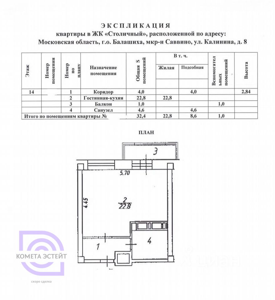 22,8 м²