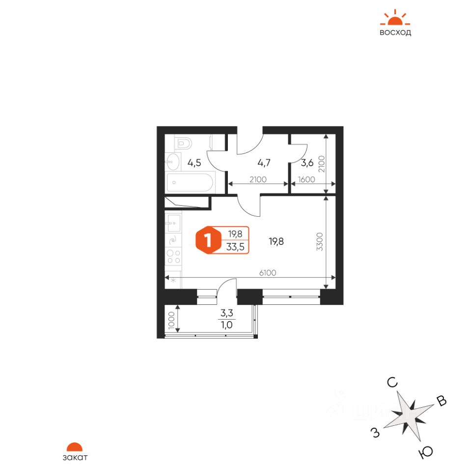 33,5 м²