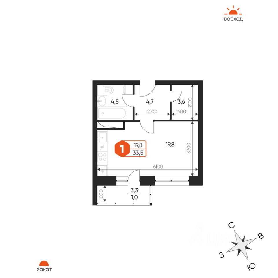 33,5 м²