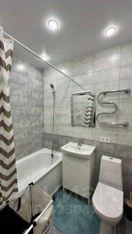 - Ванная комната оборудована полноразмерной ванной, теплым полом, подсветкой и розетками для мелкой техники, а наличие водонагревателя гарантирует независимость от сезонных отключений горячей воды.
