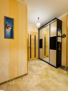 Квартира находится в жилом состоянии с косметическим ремонтом и оснащена застекленной лоджией, а также совмещенным санузлом. Наличие двух пассажирских и одного грузового лифта в доме значительно упрощает повседневную жизнь. Для вашего удобства предусмотрена многоуровневая парковка, что делает эту квартиру отличным выбором для автовладельцев.