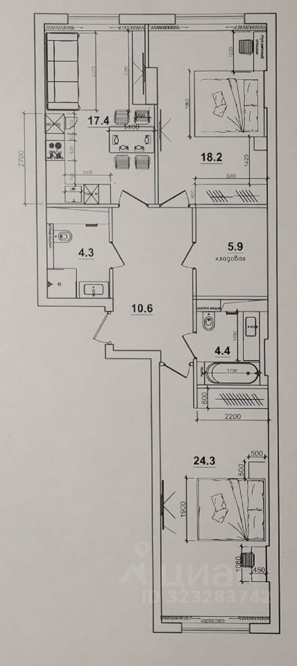 ! комната - 24.3 м2