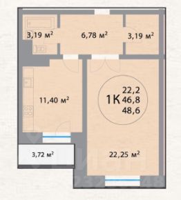 Общая площадь без учета лоджии 46.8 кв.м.