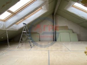 В квартире выполнен черновой ремонт по дизайн-проекту. Сделано перекрытие второго этажа на металлическом каркасе из труб 100*100, уложена фанера 20мм в два слоя, утепление 100мм, подшито ГВЛ, разведено освещение в перекрытии. Возведены и оштукатурены стены по проекту. Сделана разводка отопления и обвязка котла. Установлены большие качественные мансардные окна с подогревом. В квартире индивидуальное газовое отопление, двухконтурный котел, можно настроить любой микроклимат, и ниже коммунальные платежи. Дом заселен с 2019 года, все прекрасно функционирует, кровля не течет. В доме есть подвальные помещения - кладовки. Сухие и теплые. Высота потолков 2.20.