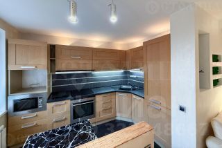 Продается с мебелью: Кухонная мебель с керамогранитной столешницей и раковиной. Встроенная техника ( плита, посудомоечная машинка, гриль, фритюрница, вытяжка Siemens, холодильник Liebherr, микроволновка). Вся мебель в квартире представленная на фотографиях. Встроенный сейф. Кондиционеры тепло/холод в каждой комнате. Полы: кухня -теплый пол, комнаты - штучный паркет из бамбука. В изолированной комнате рабочая зона отделенная от спальной оптимизирована под возможность размещения детской кроватки.