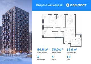 Строим кварталы для жизни с заботой о будущем. Предлагается 3-комнатная квартира комфорт-класса 86,82 кв.м в корпусе 4 на 14 этаже, в ЖК "Квартал Авиаторов"