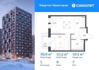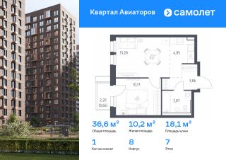 Строим кварталы для жизни с заботой о будущем. Предлагается 1-комнатная квартира комфорт-класса 36,6 кв.м в корпусе 8 на 7 этаже, в ЖК "Квартал Авиаторов"