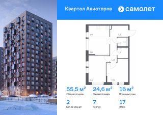 Строим кварталы для жизни с заботой о будущем. Предлагается 2-комнатная квартира комфорт-класса 55,47 кв.м в корпусе 7 на 17 этаже, в ЖК "Квартал Авиаторов"