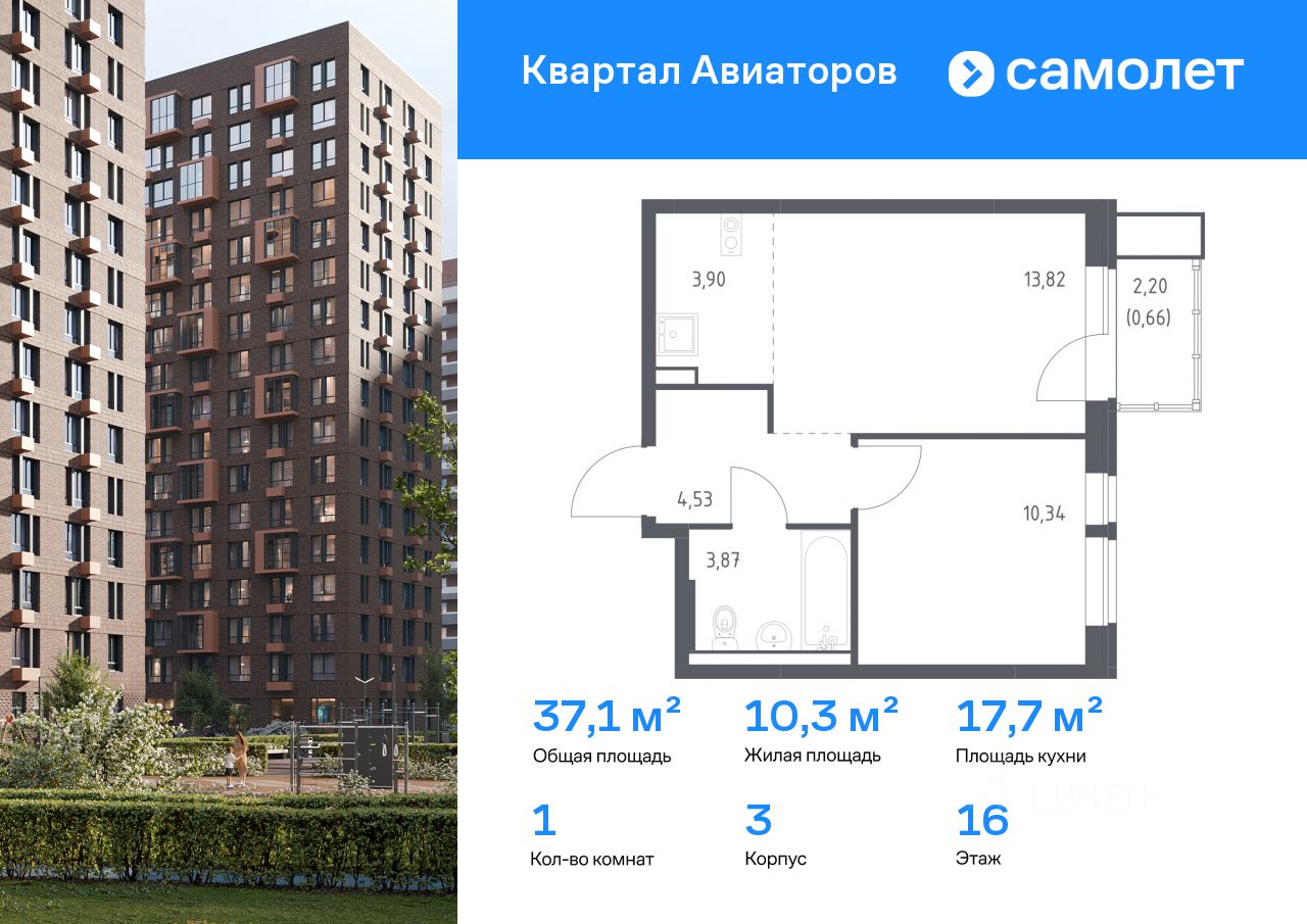 Строим кварталы для жизни с заботой о будущем. Предлагается 1-комнатная квартира комфорт-класса 37,12 кв.м в корпусе 3 на 16 этаже, в ЖК "Квартал Авиаторов"