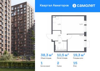 Строим кварталы для жизни с заботой о будущем. Предлагается 1-комнатная квартира комфорт-класса 38,28 кв.м в корпусе 2 на 15 этаже, в ЖК "Квартал Авиаторов"