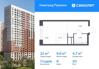 Строим кварталы для жизни с заботой о будущем. Предлагается квартира студия комфорт-класса 21 кв.м в корпусе 8 на 20 этаже, в ЖК "Новоград Павлино"