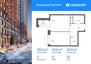 Строим кварталы для жизни с заботой о будущем. Предлагается 1-комнатная квартира комфорт-класса 35,2 кв.м в корпусе 6 на 21 этаже, в ЖК "Новоград Павлино"