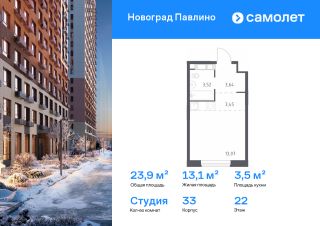 Строим кварталы для жизни с заботой о будущем. Предлагается квартира студия комфорт-класса 23,9 кв.м в корпусе 33 на 22 этаже, в ЖК "Новоград Павлино"