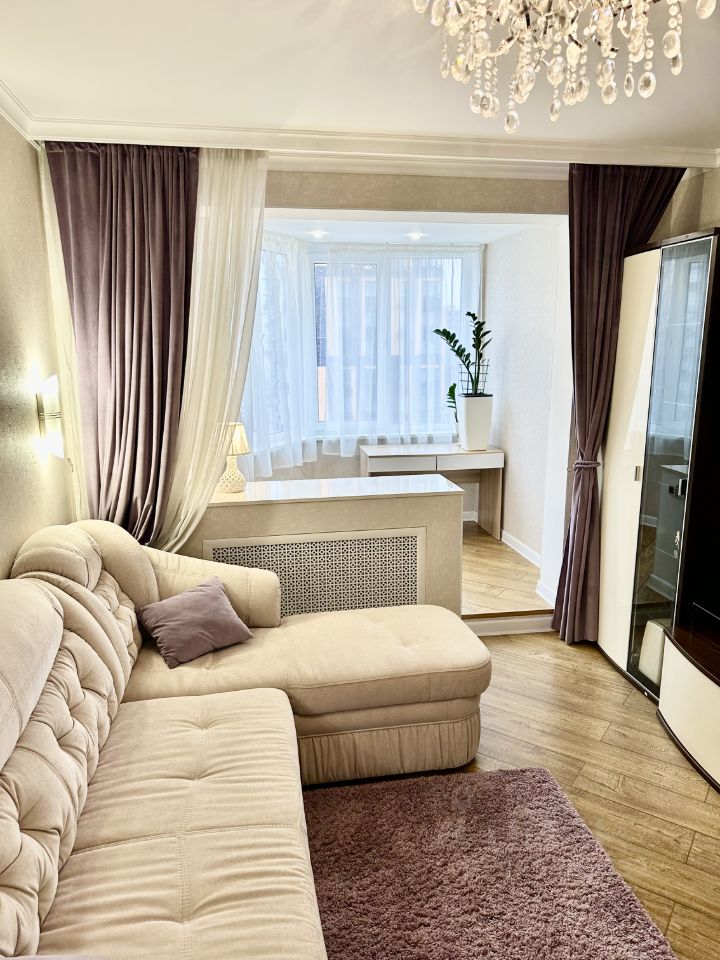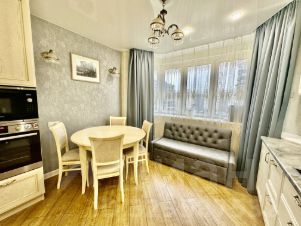 В квартире сделан дизайнерский ремонт, который создаёт атмосферу уюта и современности. Кухня просторная и функциональная, что идеально подходит для кулинарных экспериментов, кухонный гарнитур с итальянскими фасадами. Из окон открывается вид как на улицу, так и во двор.