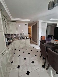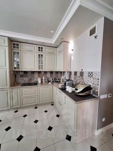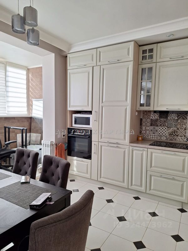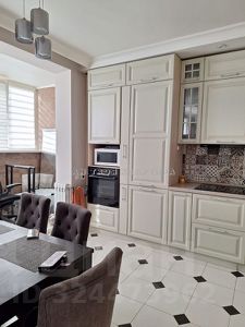 Светлая просторная кухня, остается шикарный кухонный гарнитур (фасады из МАССИВА ДУБА, внутренняя подсветка, везде доводчики Blum), техника: варочная панель, посудомоечная машина, духовой шкаф и вытяжка.