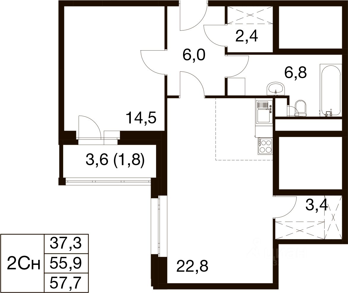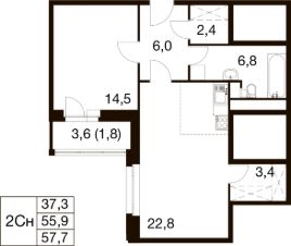 Общая площадь57,7 м²