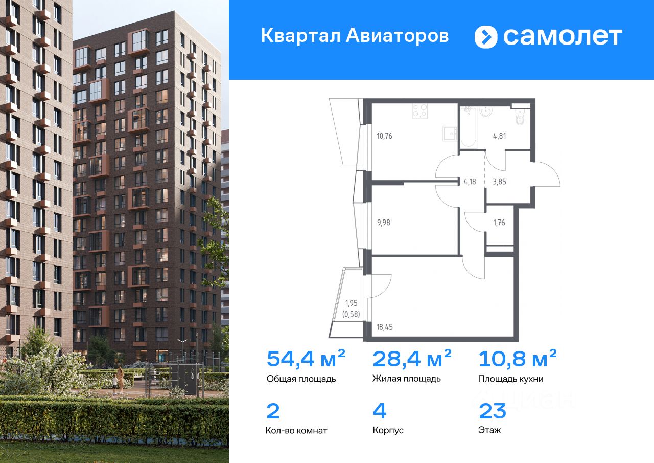 Строим кварталы для жизни с заботой о будущем. Предлагается 2-комнатная квартира комфорт-класса 54,37 кв.м в корпусе 4 на 23 этаже, в ЖК "Квартал Авиаторов"