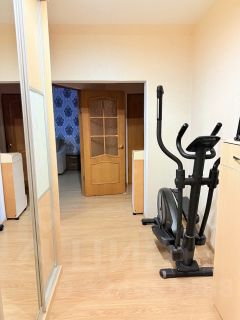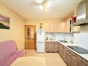 Квартира оборудована всем необходимым: встроенная кухонная мебель, двухспальная кровать, диван и шкафы, на кухне электрическая варочная поверхность и духовой шкаф, вытяжка, СВЧ-печь и холодильник.