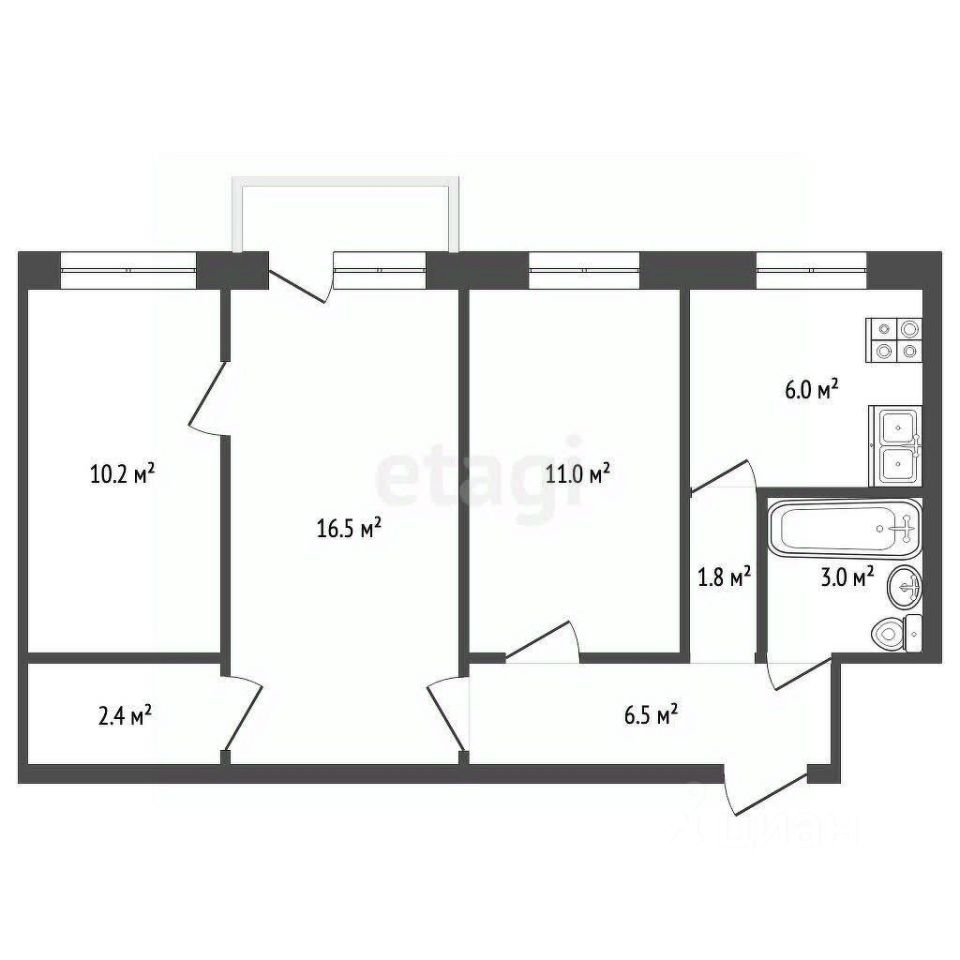 • Жилая площадь — 46,1 м², кухня — 6 м²