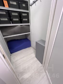 В квартире есть гардеробная/кладовая с полками. В ванной комнате современное функциональное решение - душевой угол.