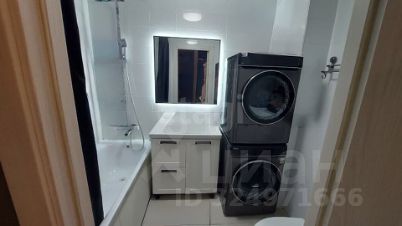 В санузле установлена ванна, тумба. Все в отличном состоянии; здесь же размещены стиральная машина и сушилка для белья.