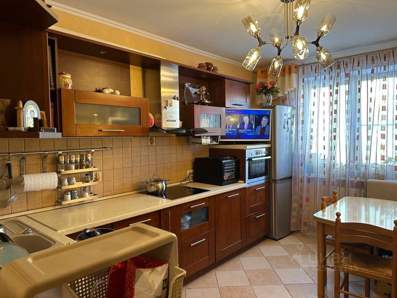 Бытовая техника: холодильник, варочная поверхность, духовой шкаф, микроволновая печь, посудомоечная машина, стиральная машина.
