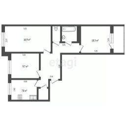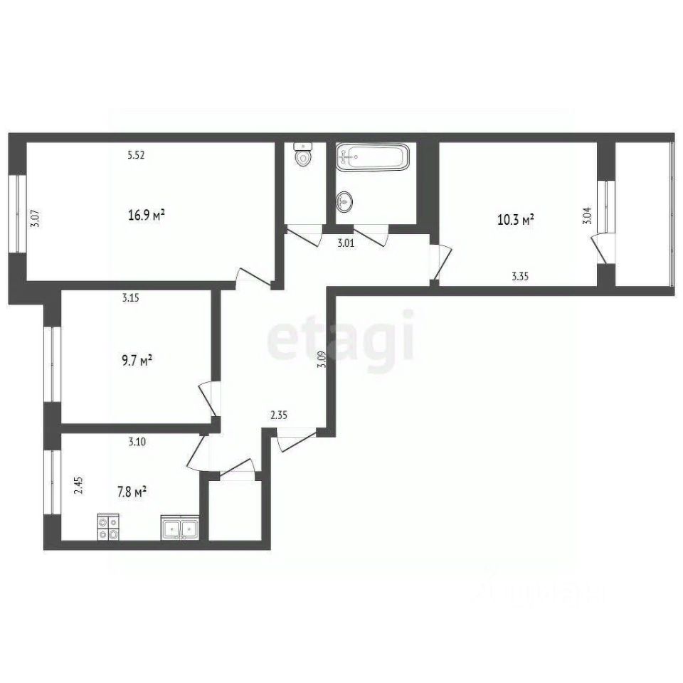 - Три изолированные комнаты 17, 11 и 10 кв.м