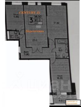 Общая площадь вместе с лоджией 90 кв. м.