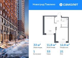Строим кварталы для жизни с заботой о будущем. Предлагается 1-комнатная квартира комфорт-класса 33 кв.м в корпусе 33 на 21 этаже, в ЖК "Новоград Павлино"