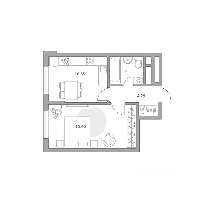 15,4 м²