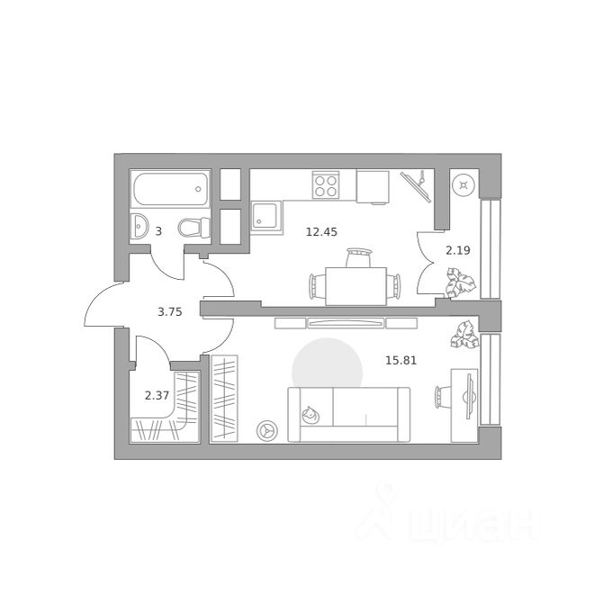 15,8 м²