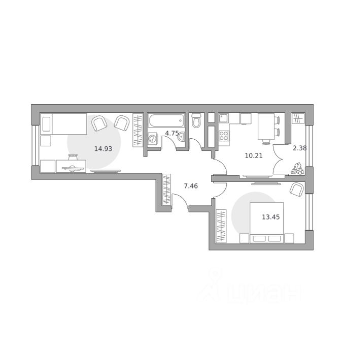 Продаётся 2-комнатная квартира 403, площадью 53,18 м², на 14 этаже в ЖК "Пехра" корпус 4. Стоимость — от 10963945 руб. Квартира с отделкой, планировка распашная, окна во двор.