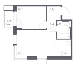 В продаже 1-комнатная квартира в корпусе 3 ЖК 'Квартал Авиаторов'. Квартира располагается на 7 этаже, общая площадь 41.45 м2.