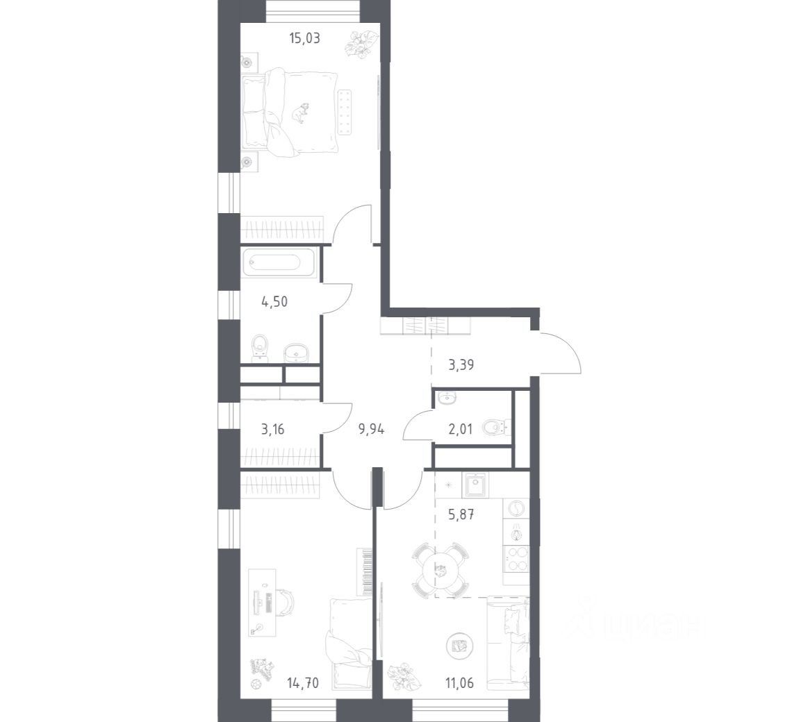 68,3 м²