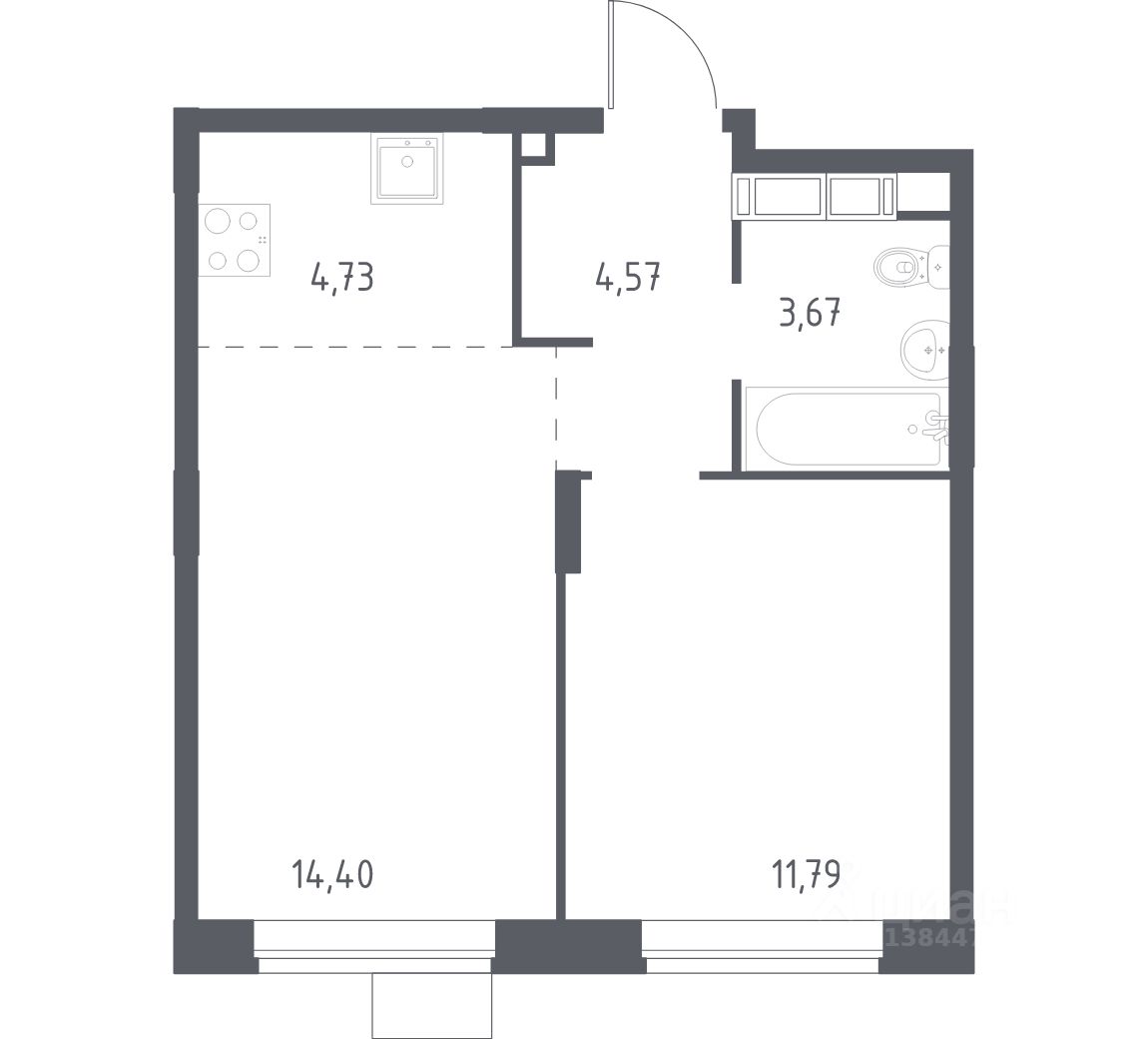 В продаже 1-комнатная квартира в корпусе 34 ЖК 'Новоград Павлино'. Квартира располагается на 8 этаже, общая площадь 38.1 м2.
