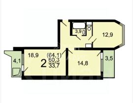 Общая площадь квартиры 60.3 метров. Две изолированные комнаты (18+14 метров) из комнат выход на две лоджии - утеплены (на 1 тёплый пол), шикарная куxня с эpкepом 12.9, совместный санузел. Окна выходят во двор и на улицу. Дом оборудован пассажирским и грузовым лифтами. На территории предусмотрена наземная парковка. Дом в хорошем состоянии, а наличие пандуса делает его доступным для всех категорий жильцов.