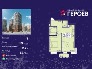 Общая площадь37,1 м²