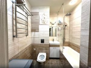 Просторная двухкомнатная квартира площадью 45 кв. м расположена на 16 этаже современного монолитного 25-этажного дома 2015 года постройки.
