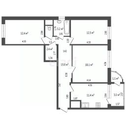 Кухня достаточно большая, чтобы разместить обеденную зону и всю необходимую технику. В квартире раздельный санузел, что удобно для семьи из нескольких человек.