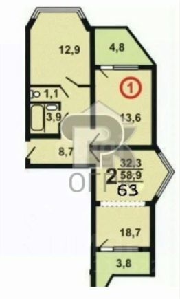 * 2 изолированных комната, 18.7 и 13,6 кв.м.