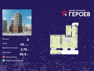 Продаётся 2-комнатная квартира в формате евро 36.50 кв. м. в жилом комплексе "Героев" в Балашихе, Железнодорожный. Квартира расположена на 10 этаже 411 корпуса.