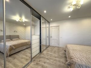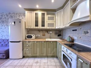 В квартире сделан качественный ремонт, все продумано для комфортного проживая. Пол на кухне/входной зоне и санузле выложен плиткой с зонированием ламината. Под покрытие выложена пробка, чтобы пол сохранял тепло. Квартира оснащена кухонным гарнитуром + обеденный стол и стулья, духовым шкафом, холодильником, стиральной машиной, посудомоечной машиной, ТВ. Мебель и техника согласовывается с потенциальным покупателем.