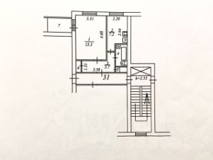 Площадь: 32.6 квадратных метров на седьмом этаже девятиэтажного кирпичного дома.