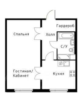 Комната: 24 м² — удобно зонируется на спальню и гостиную/кабинет; 2 двери в комнату, из кухни и коридора