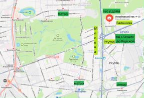 Остановка у дома: маршрутки и автобусы до метро Новогиреево, Партизанская, Первомайская, Измайловская, до Балашихи и Реутова (3 минуты до остановки, 15 минут до метро желтой ветки на маршрутке, 18 минут на метро до Третьяковской)