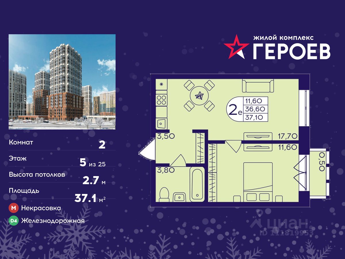 Продаётся 2-комнатная квартира в формате евро 37.10 кв. м. в жилом комплексе "Героев" в Балашихе, Железнодорожный. Квартира расположена на 5 этаже 611 корпуса. В наличии квартиры с отделкой. Всего 40 минут до центра Москвы. При покупке квартиры в сданном доме ключи выдаются сразу! Жилой квартал "Героев" - это уютный проект для семей с детьми. В квартале созданы все условия для досуга всех возрастов: игровые и спортивные площадки, места для отдыха и прогулочные зоны. За 15 минут можно дойти от дома до Ольгинского лесопарка, популярного места для отдыха на свежем воздухе. На территории жилого комплекса уже открыт детский сад на 250 мест и началось строительство еще одного - для 220 малышей, а также школы для 1320 учеников. Рядом работают магазины, кафе, супермаркеты, пункты выдачи. Преимущества: • В уютных светлых квартирах с просторными кухнями-гостиными удобно встречать гостей и проводить время наедине друг с другом. • Благодаря увеличенному остеклению в комнатах много света. • Квартиры продаются с отделкой, можно заселяться сразу после получения ключей.