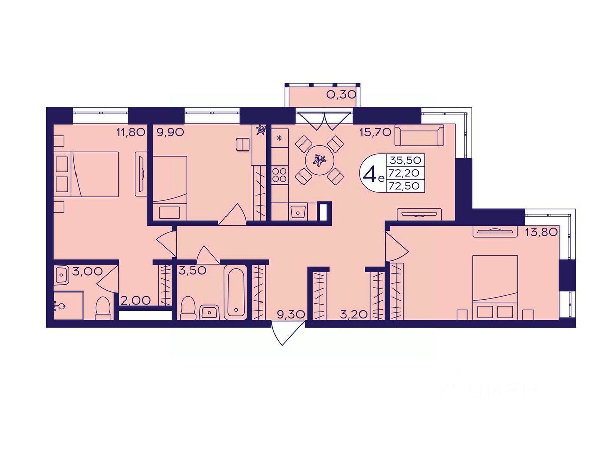 Продаётся 4-комнатная квартира в формате евро 72.50 кв. м. в жилом комплексе "Героев" в Балашихе, Железнодорожный. Квартира расположена на 4 этаже 611 корпуса.