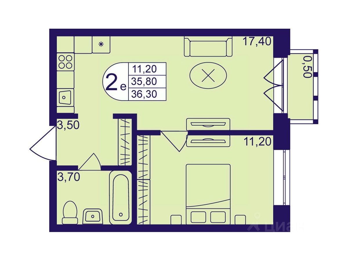 Продаётся 2-комнатная квартира в формате евро 36.30 кв. м. в жилом комплексе "Героев" в Балашихе, Железнодорожный. Квартира расположена на 7 этаже 611 корпуса.