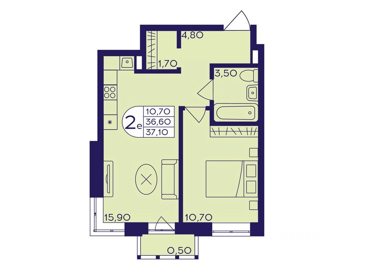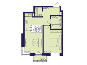 Продаётся 2-комнатная квартира в формате евро 37.10 кв. м. в жилом комплексе "Героев" в Балашихе, Железнодорожный. Квартира расположена на 8 этаже 611 корпуса.